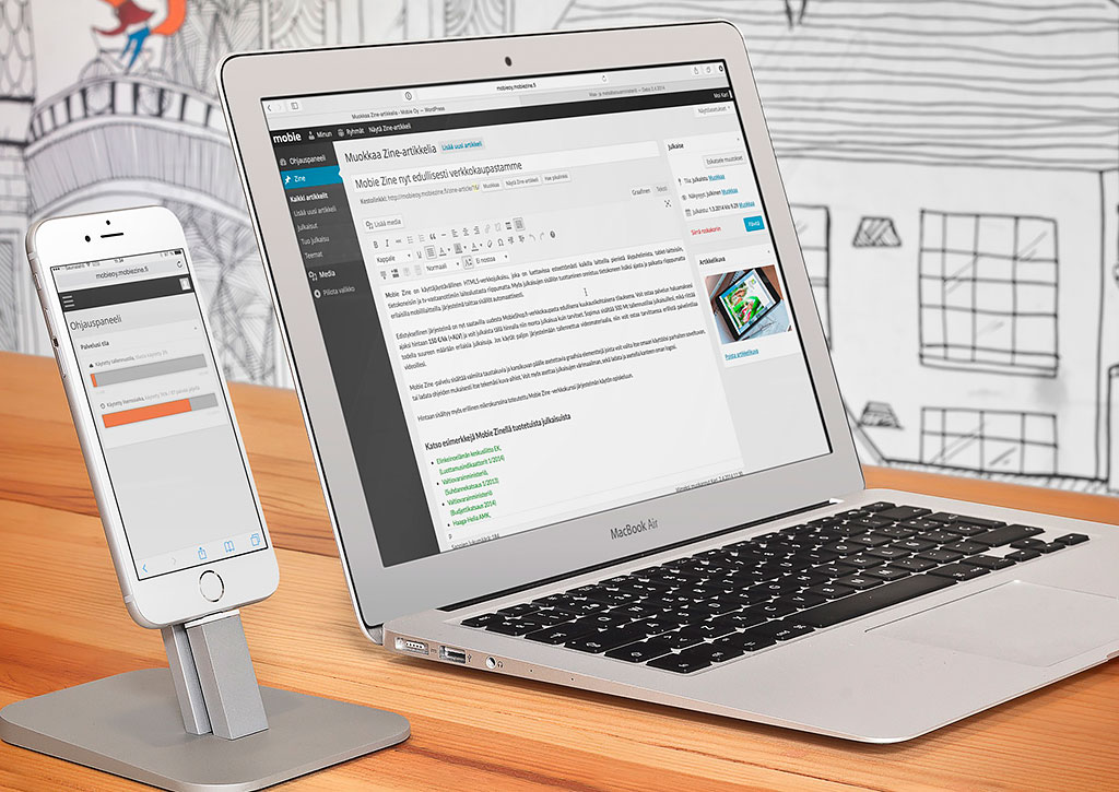 Mobie Zine on käyttäjäystävällinen HTML5-verkkojulkaisu, joka on luettavissa esteettömästi kaikilla laitteilla pienistä älypuhelimista, tablet-laitteisiin, tietokoneisiin ja tv-vastaanottimiin laitealustasta riippumatta. Se on luettavissa myös offline-tilassa ja tulostettavissa pdf-tiedostoksi. Julkaisujen sisällöntuotanto on erittäin helppoa, sillä järjestelmä taittaa kaikki sisällöt automaattisesti. Voit myös tuottaa ja muokata sisältöjä erilaisilla mobiililaitteilla.